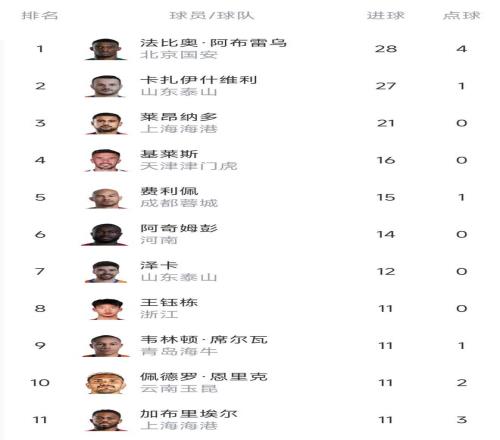 射手榜:金靴,山东泰山的卡扎伊什维利,银靴,北京国安的阿布雷乌。本土最佳射手:浙江的王钰栋!