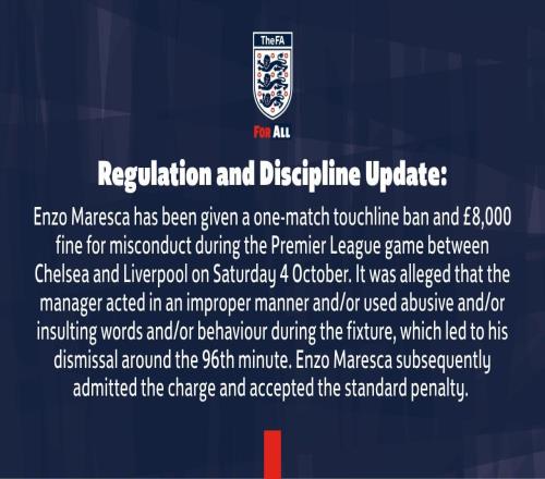 官方:马雷斯卡因绝杀后染红停赛一场,罚款8000英镑 -
